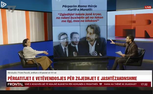 Ish-deputetja e Kuvendit të Kosovës, Fitore Pacolli, në një intervistë në FRONTAL të T7, ka thënë se kjo që po ndodh me buxhetin e Prishtinës, s’është hakmarrje e pushtetit ndaj Perparim Ramës.