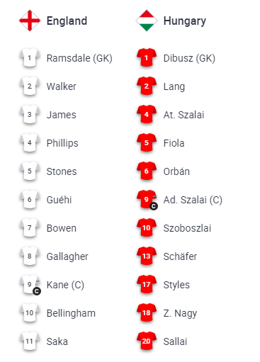 Ndeshja tjetër në këtë grup do të zhvillohet mes Anglisë, e cila ndodhet në pozitën e fundit, dhe Hungarisë që është e dyta.