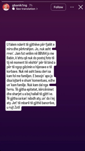 Në mesazhin e tij publik, G Bani theksoi se nuk do të publikojë foto apo momente të vështira për të “bindur” të tjerët, duke i lënë pas komentet dhe dyshimet.