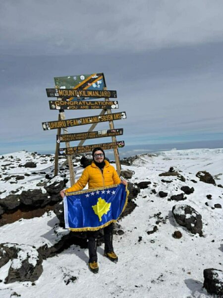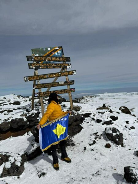 Këtë e ka bërë të ditur Petrit Kllokoqi, i cili e vendosi flamurin në majën e malit Kilimanxharo, që është në 5 mijë e 900 metra.