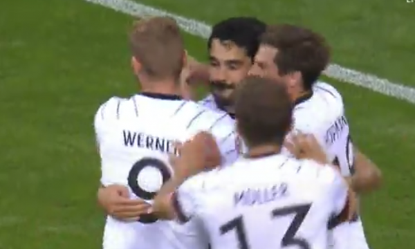 Ilkay Gundogan ka shënuar golin e dytë për gjermanët në minutën 45+4, shkruan Gazeta Express.