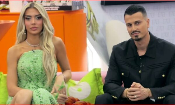 Gjiko hynë brenda në studio derisa drejton kamerën në drejtim të Elitës e cila ka kufjet dhe është para mikrofonit incizues në studio.