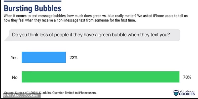 Nga 1,000 të anketuar, 22% e përdoruesve të iPhone thanë se mendonin më pak për dikë kur shihnin një bllok të gjelbër.