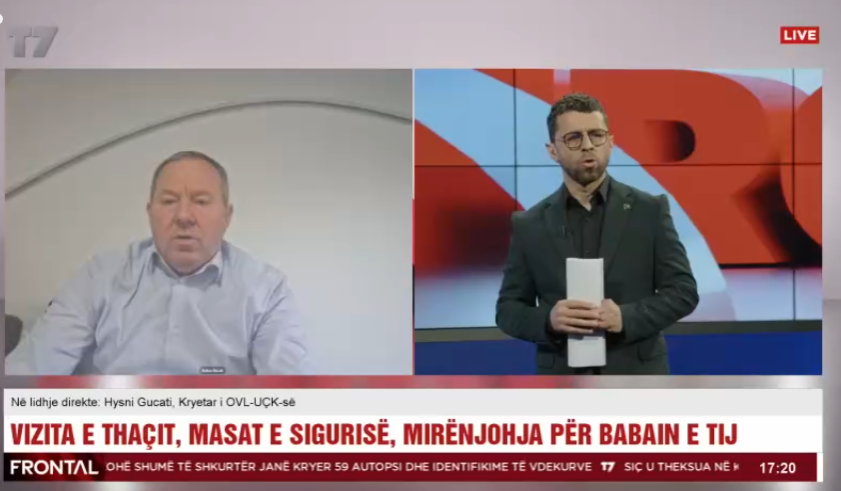 Kreu i OVL-UÇK-së, Hysni Gucati, në FRONTAL të T7 ka folur për vizitën që sot ka realizuar në Kosovë ish-presidenti Hashim Thaçi, duke qëndruar në fshatin e tij në Burojë për të nderuar babain e tij tek varri dhe për të qëndruar edhe me familjen e ngushtë.