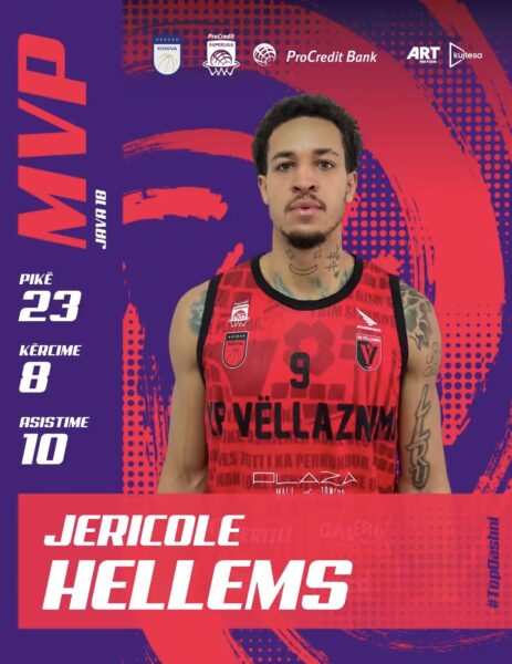 Jericole Hellems kishte dyshifror të dyfishtë me 23 pikë e dhjetë asistime, duke shtuar edhe tetë kërcime, në këtë sfidë të rëndësishme për kuqezinjtë, duke u shpallur edhe MVP i javës.
