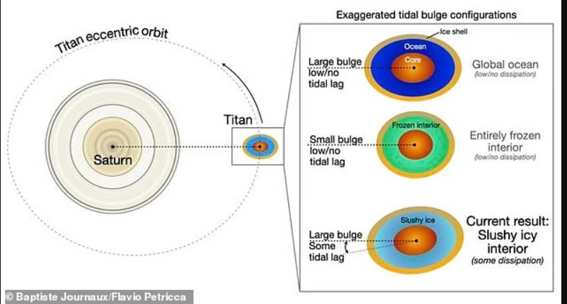 Duke përdorur metoda moderne për rianalizimin e të dhënave të rrezatimit, studiuesit zbuluan se deformimi i Titanit ndodh rreth 15 orë pas kulmit të tërheqjes gravitacionale të Saturnit.