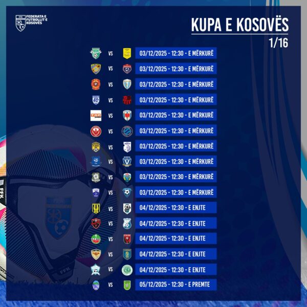 Është hedhur sot shorti i së 16-ës së finales së Kupës së Kosovës në futboll.