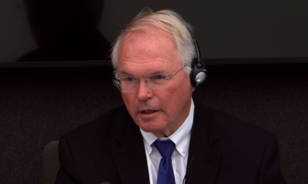 Christopher Hill, ish i dërguari special i Shteteve të Bashkuara të Amerikës po dëshmon në Gjykatën Speciale në rastin e ish-presidentit të Kosovës, Hashim Thaçi dhe ish-krerëve tjerë të UÇK-së.