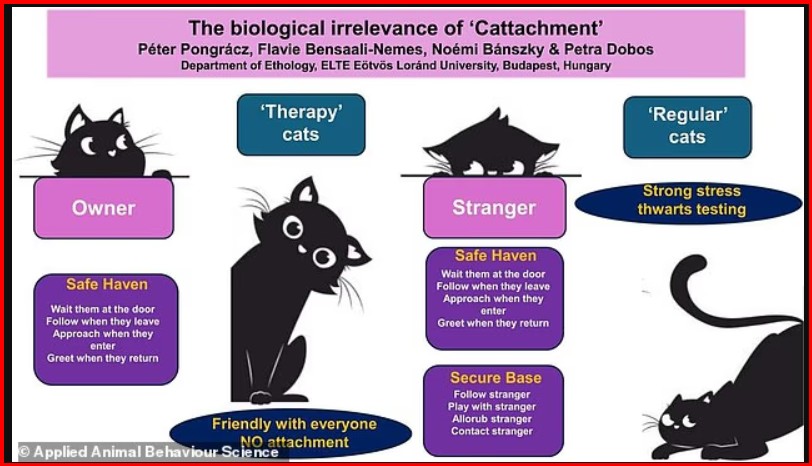Ndërsa qentë kërkojnë siguri dhe ngushëllim te pronarët, eksperimenti zbuloi se macet nuk janë më të prirura të kërkojnë afërsi ose ngushëllim nga pronari i tyre sesa nga një i panjohur.