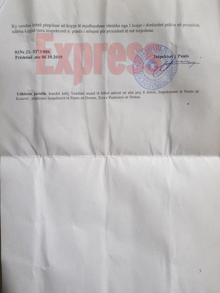 Inspektorati i Punës i del në mbrojtje edhe një zyrtari tjetër të larguar nga FFK - Gazeta Express