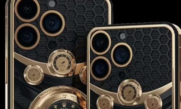 Dizajnerët nga Cavier prezantuan smartfonin luksoz këtë javë, me një orë Rolex Cosmograph Daytona prej ari të verdhë, të kompletuar me tetë diamante.