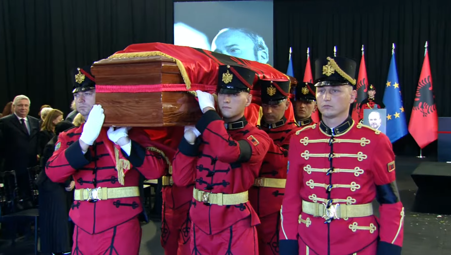 Arkivoli me trupin e pajetë të ish-kryeministrit shqiptar ka bërë xhiron e fundit përpara kryeministrisë, ku Fatos Nano shërbeu 3 herë në krye të qeverisë shqiptare.