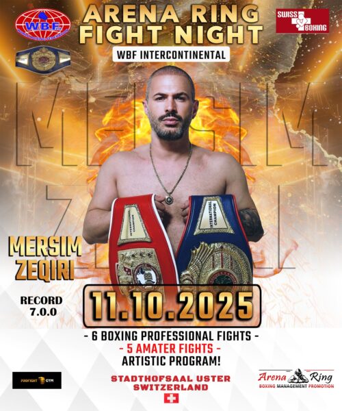 E Zeqiri, përmes “Management Promotion – ArenaRing” javë më parë e kishte zyrtarizuar gala mbrëmjen e radhës, e cila do të mbahet në pjesën e dytë të vitit në Uster të Zvicrës.