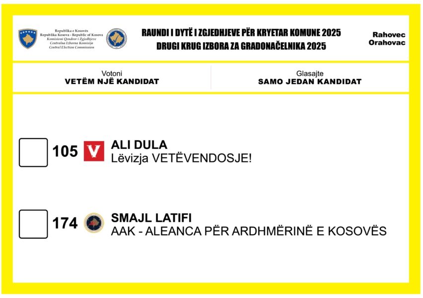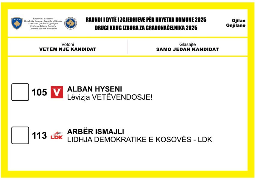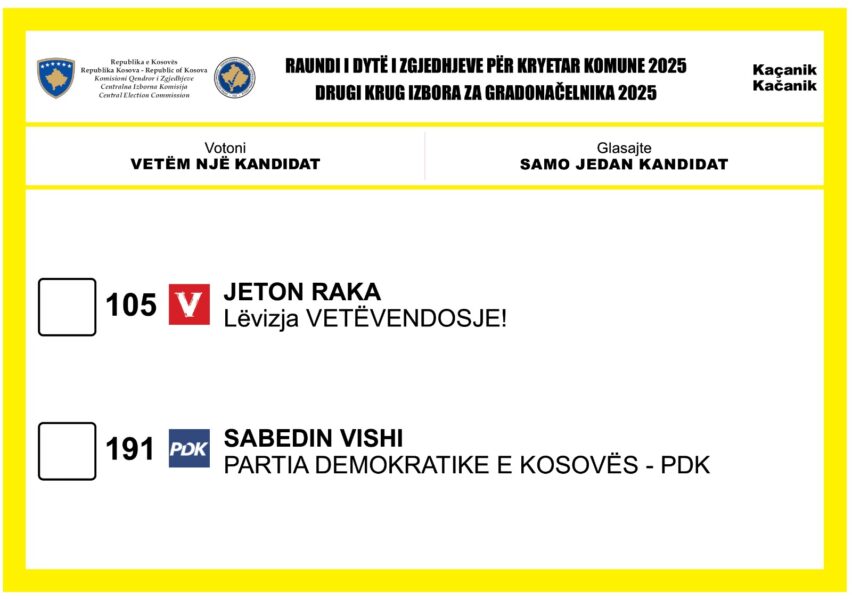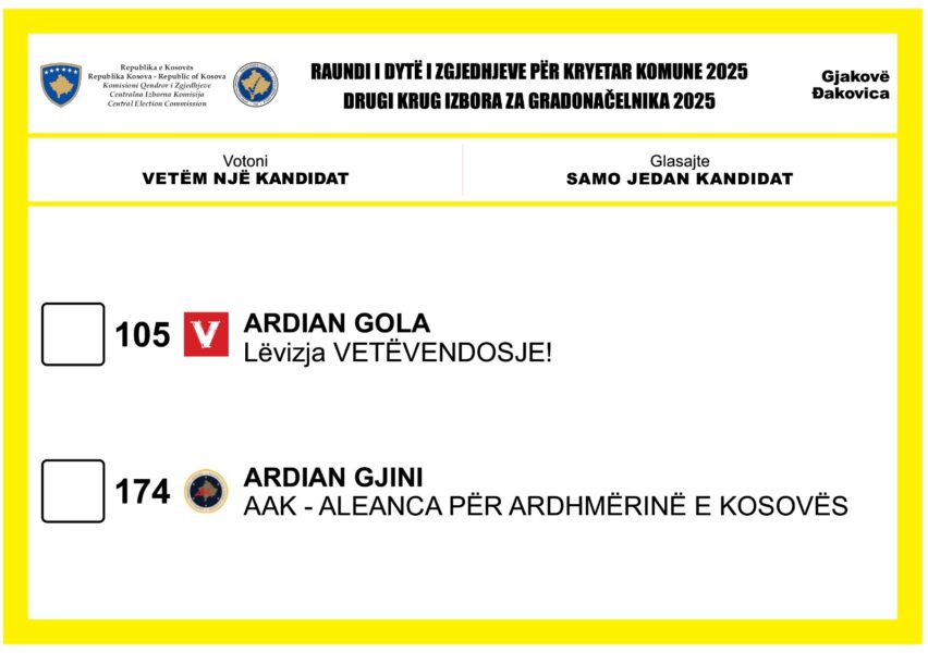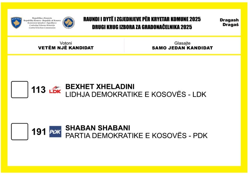 Raundi i dytë i zgjedhjeve për Kryetarë të Komunave do të mbahet në këto 18 komuna: Gjakovë, Gjilan, Dragash, Kaçanik, Klinë, Fushë Kosovë, Mitrovicë e Jugut, Obiliq, Rahovec, Pejë, Prishtinë, Prizren, Suharekë, Viti, Vushtrri, Junik, Mamushë dhe Kllokot.