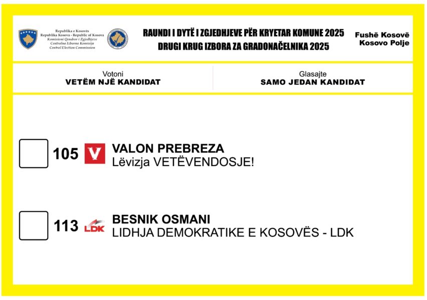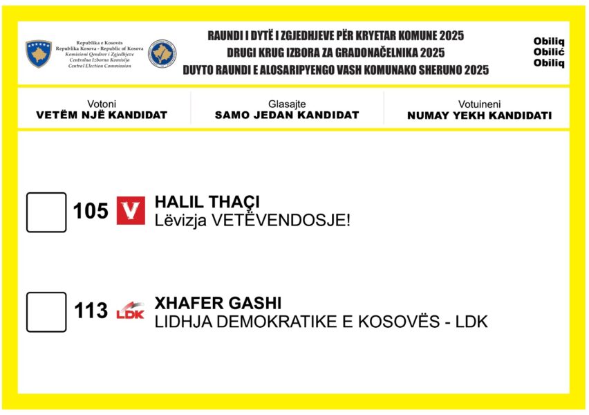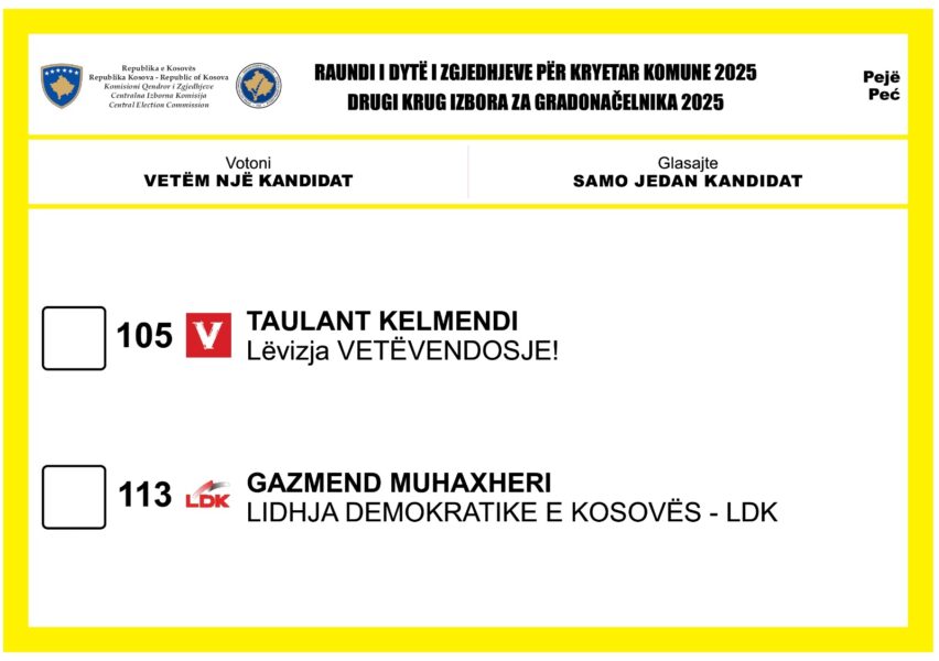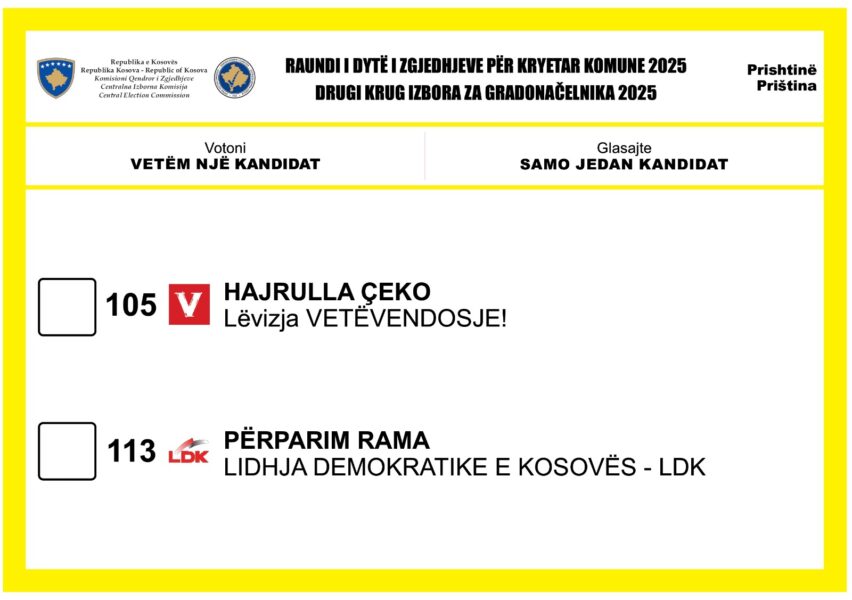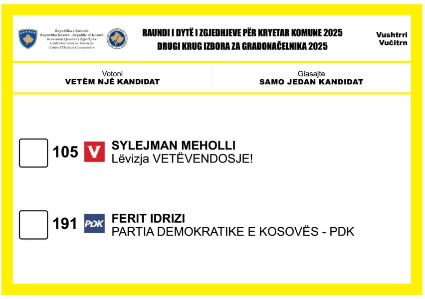Komisioni Qendror i Zgjedhjeve ka publikuar fletëvotimet të cilat do të shpërndahen në vendvotime, në të cilat do të mbahet raundi i dytë i zgjedhjeve për Kryetarët e 18 komunave.