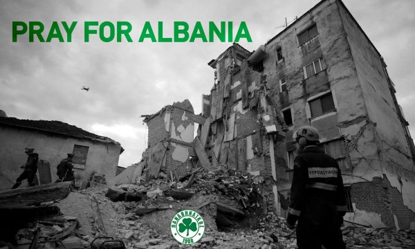 Solidariteti dhe lutjet për Shqipërinë vijnë edhe nga klubi i shtetit fqinj, Greqisë, Panathinaikos, e cili e ndan dhimbjen me popullin shqiptar për viktimat e tërmetit.