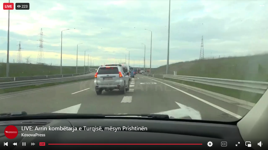 Kombëtarja turke shihet nën përcjelljen e rreptë të eskortës së Policisë së Kosovës, në rrugën e tyre pas largimit nga aeroporti.