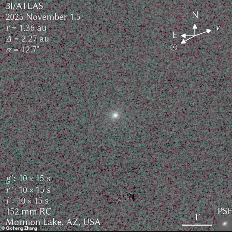 Pas perihelionit më 31 tetor, 3I/ATLAS po bëhet sërish i dukshëm për teleskopët bazuar në Tokë. Dr Zhang e ka parë kometën me teleskopin Discovery dhe me teleskopin e tij personal. Ai tha për Live Science: