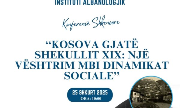 Instituti Albanologjik-Prishtinë, gjegjësisht Dega e Historisë-IAP, organizon konferencën shkencore me temën bosht “Kosova gjatë shekullit XIX: një vështrim mbi dinamikat sociale” më 25 shkurt nga ora 10:00.
