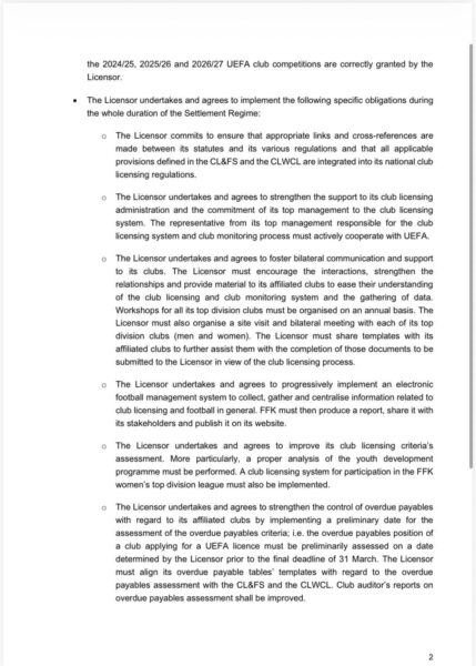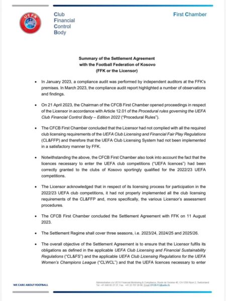 FFK nuk ka vepruar sipas rregulloreve të UEFA-s për licencimin e klubeve.