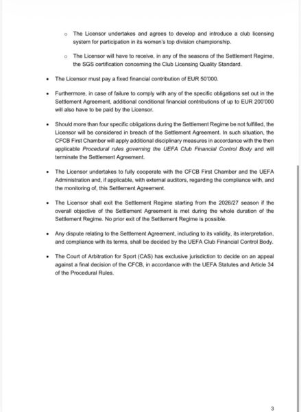 Federata është e detyruar të përmbushë 8 kushte specifike gjatë sezoneve 2022–2027.