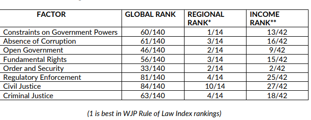 Një raport i “World Justice Project”, për sundimin e ligjit 2022 e ka nxjerr Kosovën të 57’tën në botë prej 140 shteteve sa përfshinte raporti.