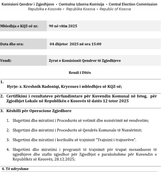 Në rend die do ë jetë certifikimi i rezultateve përfundimtare për Kuvendin Komunal në Istog, për zgjedhjet e 12 tetorit.