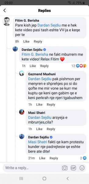 Por, Sejdiu i është përgjigjur duke i thënë se mburret me këtë video, për faktin se ka protestuar kundër një padrejtësie që është bërë atë ditë.