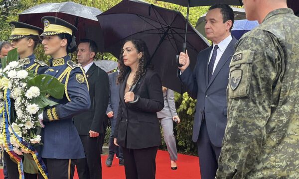 Presidentja Vjosa Osmani, kryetari i Kuvendit Dimal Basha dhe kryeministri në detyrë Albin Kurti bënë homazhe te pllaka përkujtimore në oborrin e Kuvendit, duke kujtuar viktimat e sulmit të 11 shtatorit.