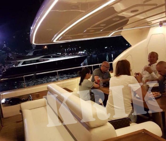Në këtë fotografi, derisa Pacolli është i ulur në tavolinë me Radojqiqin, teksa aty janë edhe dy gra të paidentifikuara.