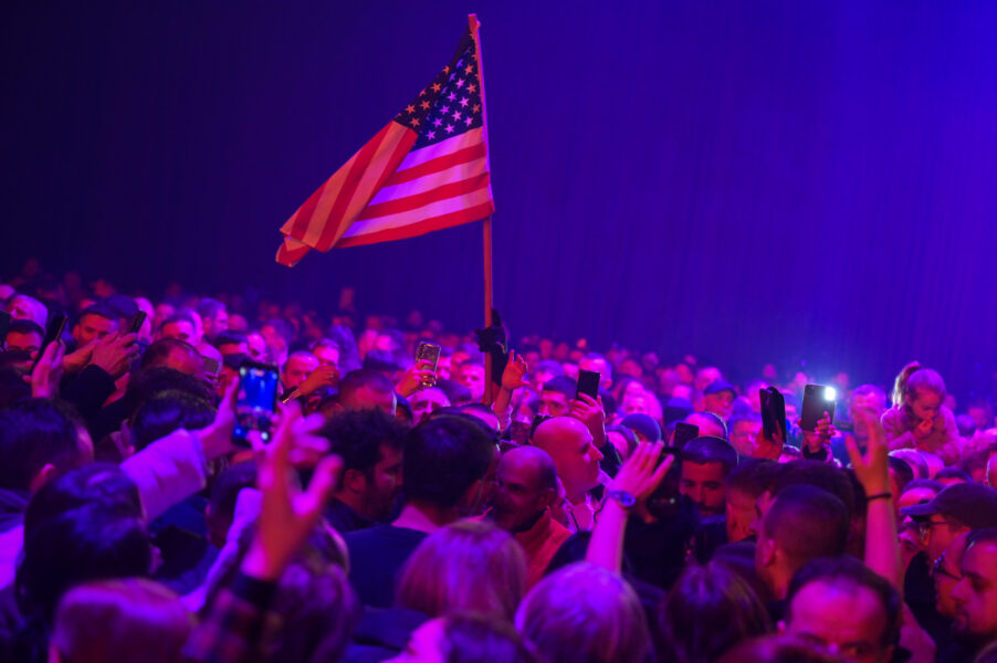 Në mesin e të pranishmëve u pa edhe një flamur amerikan krahas flamujve kombëtarë, ndërsa vetë Kurti u pa duke u fotografuar me mbështetësit e tij.