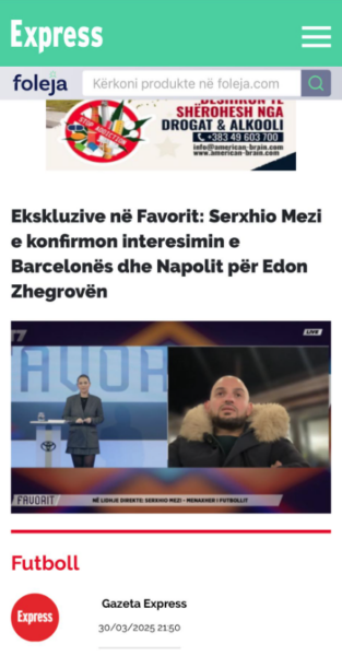Mbrëmë në emisionin sportiv “Favorit” në T7 në një lidhje direkte, menaxheri Serxhio Mezi ekskluzivisht për këtë emision e konfirmoi lajmin se Napoli dhe Barcelona janë të interesuara për yllin kosovar, Edon Zhegrova.