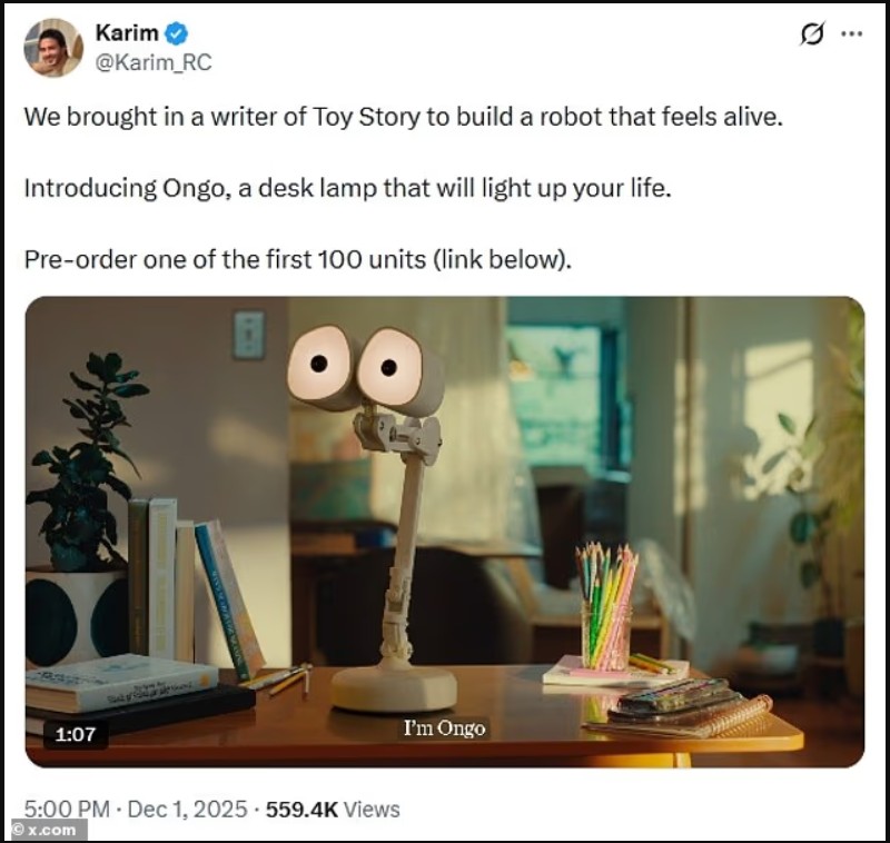 Krijuar nga kompania kaliforniane Interaction Labs, Ongo, një lampë inteligjente robotike, mund të lëvizë, shohë, dëgjojë dhe madje të flasë.