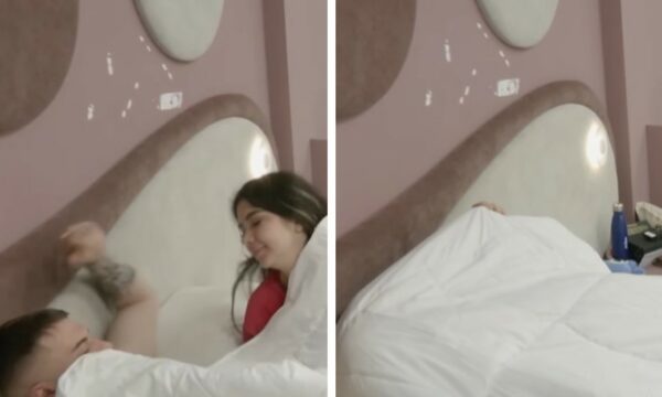 E së fundmi, çifti lanë hatërmbetjet dhe u panë së bashku nën jorgan të mbuluar.