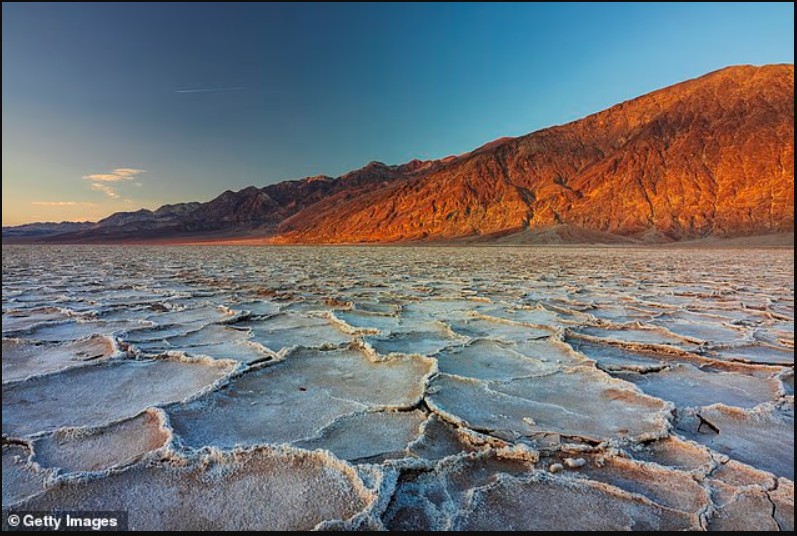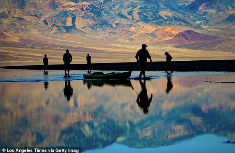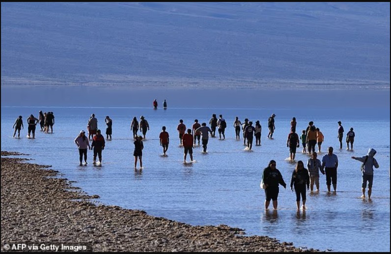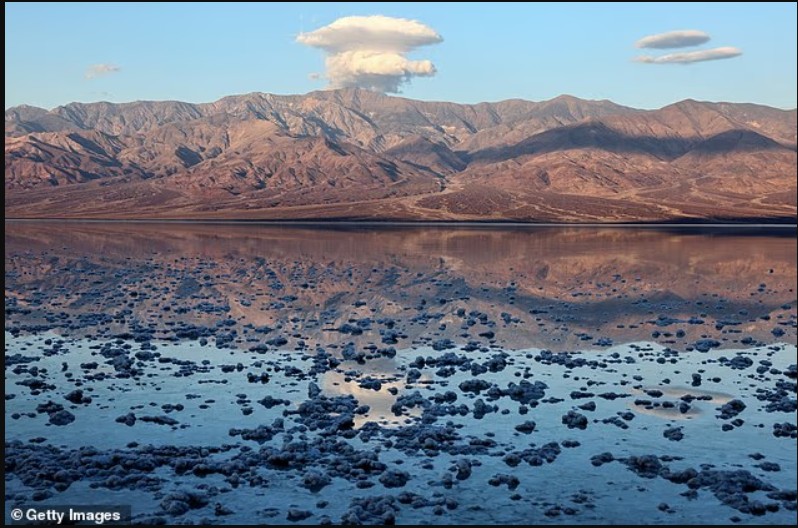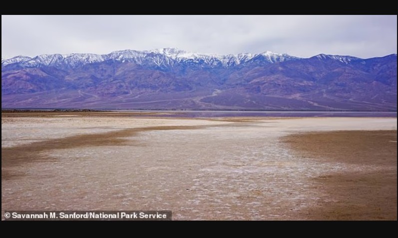 Badwater Basin, një nga vendet më të nxehta në Tokë dhe pika më e ulët e Amerikës së Veriut me 86 metra nën nivelin e detit, regjistroi 6.1 cm shi vetëm në tre muaj.