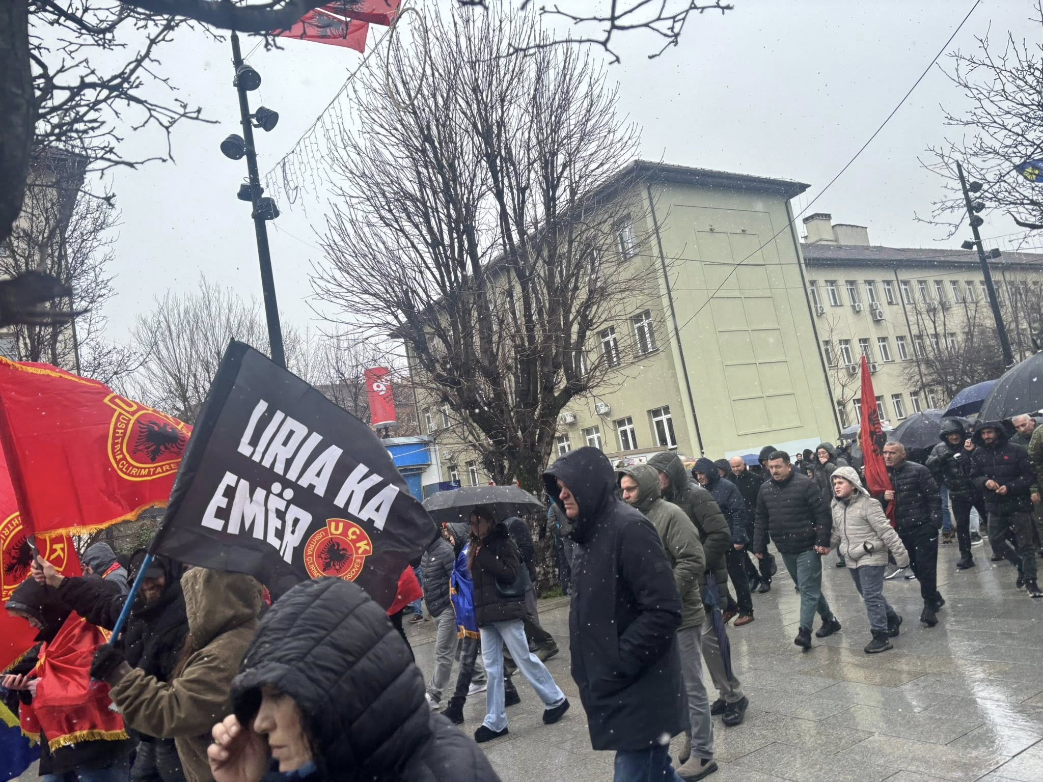 Pjesëmarrësit kërkojnë drejtësi për ish-krerët e UÇK-së që po gjykohen në Hagë, Hashim Thaçi, Kadri Veseli, Jakup Krasniqi dhe Rexhep Selimi.