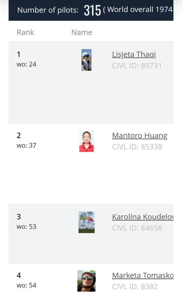 Pilotja e jashtëzakonshme Lisjeta Thaqi ka arritur sukses duke u renditur e para në botë në kategorinë e femrave, një arritje që e vendos Kosovën në majën e paragllajdit botëror.