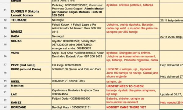 Lista më poshtë përmban emrat e zonave ku ka më shumë nevojë dhe personat e kontaktit për çdo zonë.