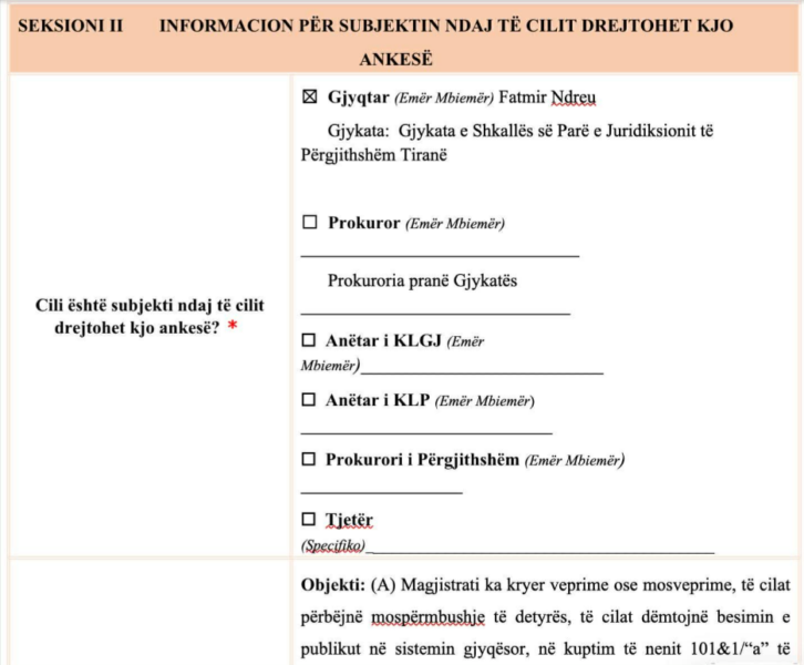 Kërkesa për masë disiplinore ndaj gjykatësit Fatri Ndreu në Inspektoriatin e Lartë të Drejtësisë
