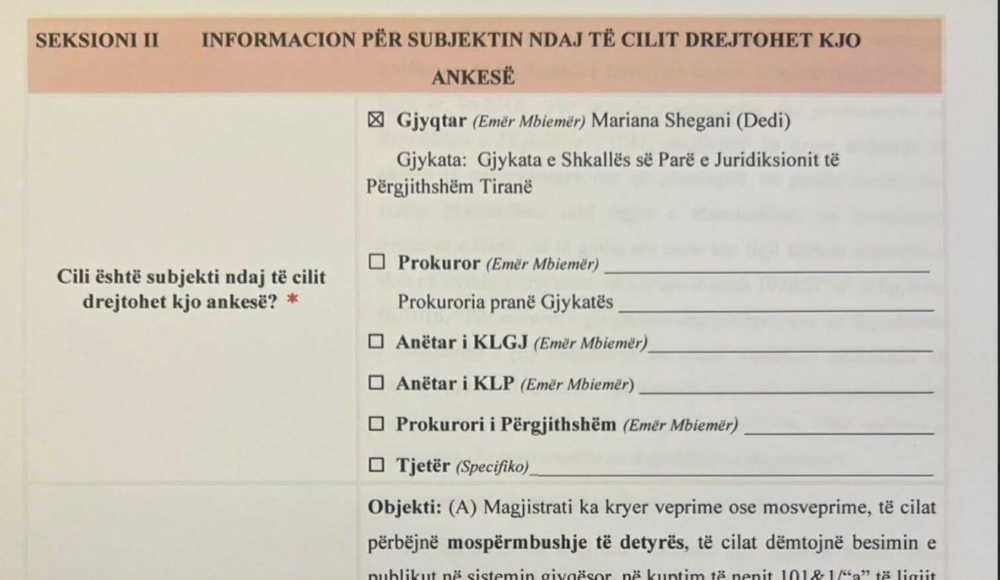 Ankesa drejtuar ILD kërkon verifikimin disiplinor të veprimeve të gjyqtares Marjana Shegani, me pretendimin se vendimi i saj përbën shkelje të rënda të ligjit dhe të parimit të proporcionalitetit, duke i dhënë një aksioneri minoritar mundësinë të bllokojë një investim strategjik kombëtar.