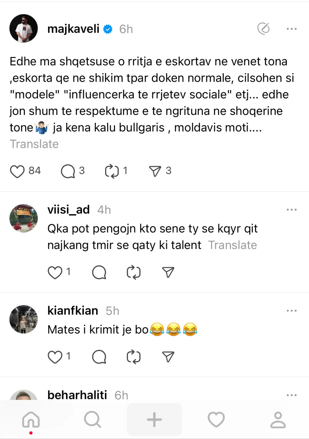 “Edhe ma shqetsuse o rritja e eskortav ne venet tona, eskorta qe ne shikim tpar doken normale, cilsohen si ‘modele’, ‘influencerka te rrjetev sociale’ etj… edhe jon shum te respektume e te ngrituna ne shoqerine tone ir ja kena kalu Bullgaris, Moldavis moti….”