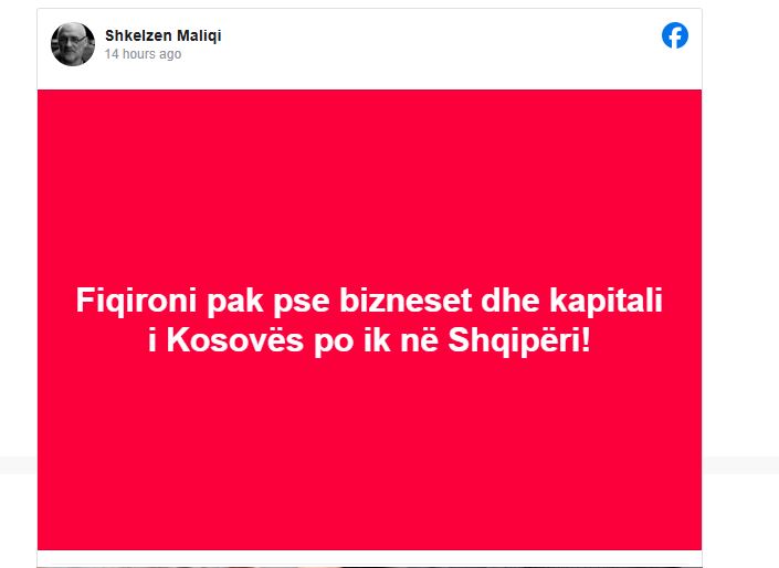 “Fiqironi pak pse bizneset dhe kapitali i Kosovës po ik në Shqipëri”, ka shkruar ai në profilin e tij në “Facebook”.