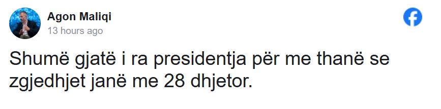 “Shumë gjatë i ra presidentja për me thanë se zgjedhjet janë me 28 dhjetor”, ka shkruar ai.