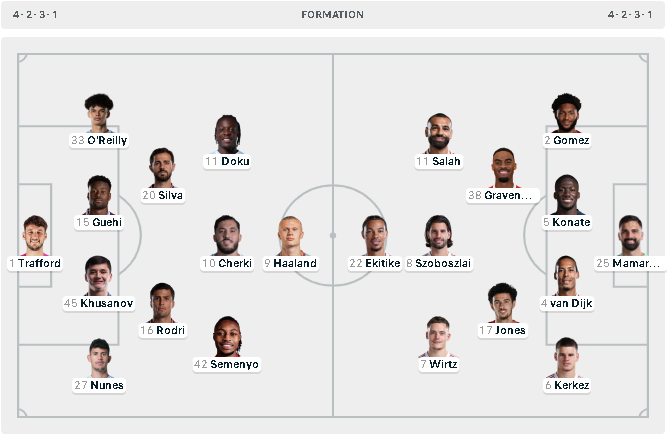 Janë publikuar formacionet zyrtare për përballjen mes Manchester City dhe Liverpool FC.