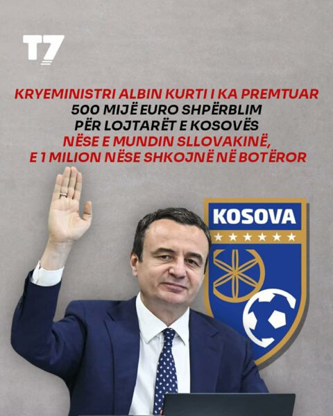 Albin Kurti ka premtuar se nëse Kosova e mposht Sllovakinë do pasojë shpërblimi prej 500 mijë eurosh.