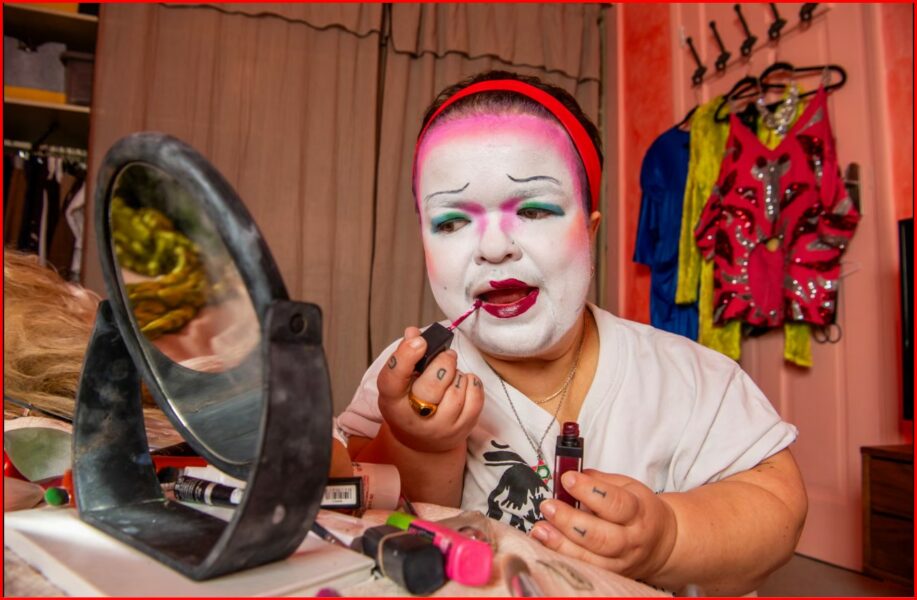 “Më pëlqen gjithashtu të kem bushtin dhe të pasmet jashtë,” shton Reynolds. Si një drag queen jo-binare trans me nanizëm, Reynolds është pothuajse unik në llojin e tyre.