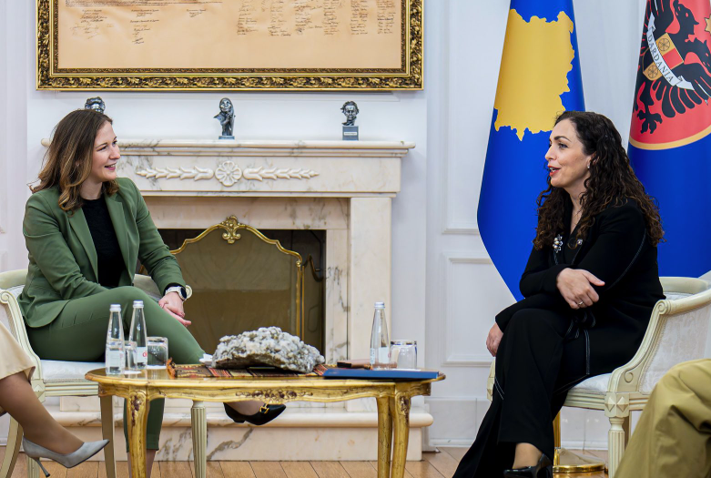 “Kënaqësi të takoj Presidenten Vjosa Osmani në Kosovë. Diskutuam rëndësinë e stabilitetit, qeverisjes së mirë dhe bashkëpunimit rajonal. Të gjitha janë thelbësore për të ardhmen e Kosovës në Evropë”, ka shkruar ajo./Express/