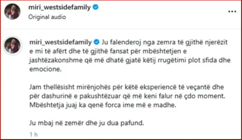 Miri reagon pas “BBV”: Mesazh prekës për fansat që e mbështetën