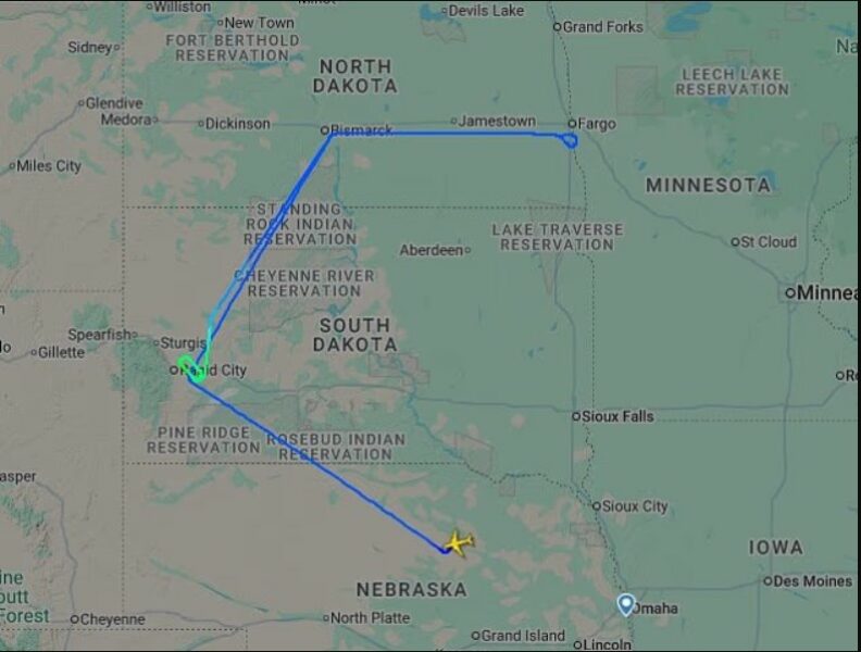 Të dhënat e fluturimit tregojnë se ky i ashtuquajturi “nuklear-snifer” u ngrit nga Nebraska, u rrotullua mbi South Dakota dhe bëri një hark afër Fargo, North Dakota. Aktualisht, avioni po qarkullon mbi Rapid City, South Dakota, ndërsa vazhdon misionin e tij.