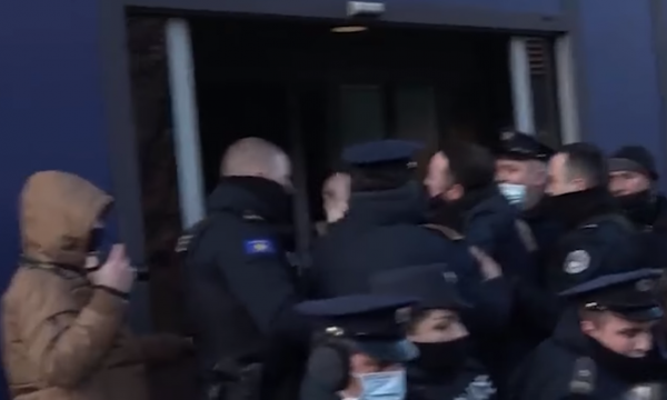 Kreu i PSD-së, Dardan Molliqaj, sot gjatë mbajtjes së protestës përpara objektit të Qeverisë së Kosovës është përplasur me pjesëtarët e Policisë së Kosovës, meqë Molliqaj kërkonte që ata të zmbrapseshin dhe t’iu drejtohej protestuesve nga shkallët e hyrjes së Qeverisë.